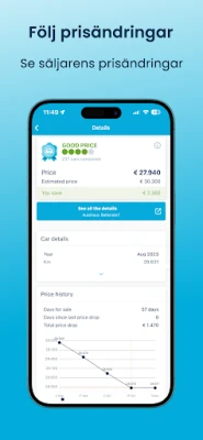 **AutoUncle**-appen är din personliga bilkonsult, paketerad med funktioner som förenklar din bilresa. Förutom gratis prisvärdering på varje objekt kan du beräkna bytespriser, följa en specifik bils prisutveckling över tid och skapa skräddarsydda sökagenter som meddelar dig om nya annonser eller prissänkningar som matchar dina kriterier. Använd avancerade filter för värdering, pris, ålder, miltal, årsmodell, bränsle och hästkrafter för att snabbt hitta exakt det du söker. Spara dina favoriter för enkel jämförelse, dela intressanta fynd med vänner och navigera direkt till originalannonsen för att se alla detaljer och kontakta säljaren, oavsett om bilen finns i Sverige eller något av de andra tolv europeiska länderna vi täcker. För frågor, tveka inte att kontakta oss på