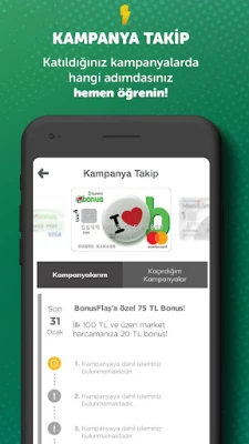 BonusFlaş – Kart / Kampanyalar erbjuder en enklare vardag med all din kortinformation samlad på ett ställe. Upptäck hundratals kampanjer för extra bonusar, miles och exklusiva rabatter. Hantera transaktioner, utnyttja flexibla betalningslösningar och få tillgång till förmåner för att maximera dina sparanden. Följ dina kampanjer och se dina belöningar direkt i appen.