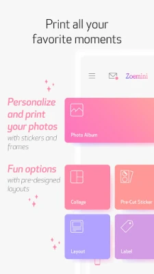 Använd Canon Mini Print-appen för att anpassa och skriva ut dina favoritbilder. Lägg till klistermärken, text, ramar och filter för att göra varje foto unikt. Importera från sociala medier eller ta nya foton. Skriv ut 2x3-tums klistermärken med din Canon Zoemini och dekorera allt från din anteckningsbok till ditt rum. Utforska din kreativitet med enkla verktyg.