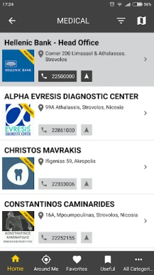 Är du på jakt efter specifika företag eller tjänsteleverantörer på Cypern? Oavsett om du är bosatt på ön eller utforskar den som besökare, gör **Around Me** det otroligt enkelt att navigera i Cyperns omfattande affärslandskap. Glöm bort tidskrävande sökningar; med några få tryck har du tillgång till en rik katalog av lokala verksamheter, direkt från din mobila enhet, var du än befinner dig. Upptäck allt från restauranger och butiker till professionella tjänster med oöverträffad lätthet.
