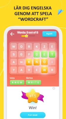Stärk ditt ordförråd effektivt med EWA:s intelligenta repetitionsmetod och dess samling av över 40 000 digitala flashcards. Bara några minuter om dagen räcker för att memorera nya ord och se hur dina språkkunskaper växer exponentiellt. EWA motiverar dig genom att tydligt visualisera dina framsteg, så att du kan jämföra dig med vänner och andra användare – och kanske till och med erövra topplistorna! Glöm stress och press; med EWA är inlärningen lustfylld och anpassad till *din* takt. Förvandla drömmen om att resa fritt, kommunicera obehindrat eller avancera i karriären till verklighet. EWA är din personliga engelska coach, alltid tillgänglig i din ficka, redo att accelerera din språkutveckling på bara en månad. Vi värdesätter din upplevelse högt och välkomnar alltid dina idéer för hur EWA kan bli ännu bättre – kontakta oss på