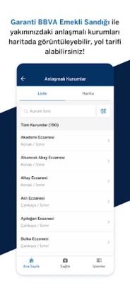 Upplev friheten att hantera dina ärenden dygnet runt, oavsett var du befinner dig. Förutom att smidigt kunna se vägbeskrivningar till anslutna institutioner, effektiviserar Garanti BBVA Emekli Sandığı Mobil varje steg från remisskapande till dokumenthantering. Vi är dedikerade till att kontinuerligt utveckla appen med nya funktioner, vilket ytterligare kommer att förenkla din vardag och ge dig de bästa verktygen för att snabbt och smidigt hantera dina pensionsförmåner.
