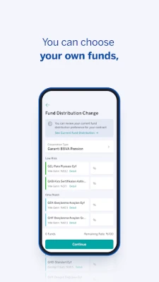 Garanti BBVA Pension Mobile ger dig enkel tillgång till dina privata pensions-, liv- och arbetslöshetsförsäkringar. Logga in med dina Garanti BBVA-kunduppgifter. Se totala sparkonton, fond- och riskfördelningar samt detaljerade betalningshistorik under "Kontoaktiviteter".