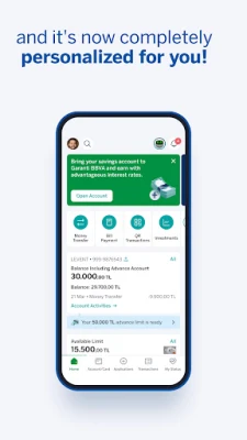 Förenkla din vardagsekonomi och ta kontroll över dina bankärenden med Garanti BBVA Mobile. Denna avancerade applikation erbjuder en smidig och säker plattform direkt från din enhet, vilket ger dig friheten att hantera allt från transaktioner till kontoutdrag, när och var det passar dig bäst. Med ett intuitivt gränssnitt är Garanti BBVA Mobile utformad för att ge dig total överblick och kontroll över din ekonomi, vilket gör den till din personliga bankfilial som alltid finns till hands.