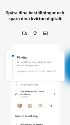 När dina val är gjorda, låt IKEA hantera logistiken. Beställ smidigt hemleverans direkt via appen och följ statusen för din försändelse i realtid, från upphämtning till leverans vid din dörr. Dessutom fungerar IKEA appen som din personliga digitala hubb för alla IKEA Family-förmåner; få omedelbar tillgång till ditt medlemskort och håll reda på alla dina kvitton på ett organiserat ställe. IKEA värnar om din integritet, och därför har du alltid full översikt och kontroll över dina personuppgifter inom appen.