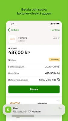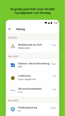 Kivra revolutionerar hur du hanterar viktig korrespondens och kvitton, och erbjuder en modern, pappersfri lösning som gynnar både dig och vår planet. Genom att samla dina digitala dokument på en säker plats bidrar varje överföring till en minskad miljöpåverkan, steg för steg. Förutom att smidigt ta emot post kan du enkelt ladda upp och förvara egna värdefulla handlingar – allt tryggt förankrat med Mobilt BankID, vilket garanterar högsta säkerhet för dina personliga uppgifter.