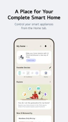 Anslut dina smarta LG IoT-hemprodukter till LG ThinQ-appen. Upplev enkel kontroll, smart vård och bekväm automatisering av dina enheter var du än är. Få personliga rekommendationer och uppgradera din livsstil med nya funktioner.